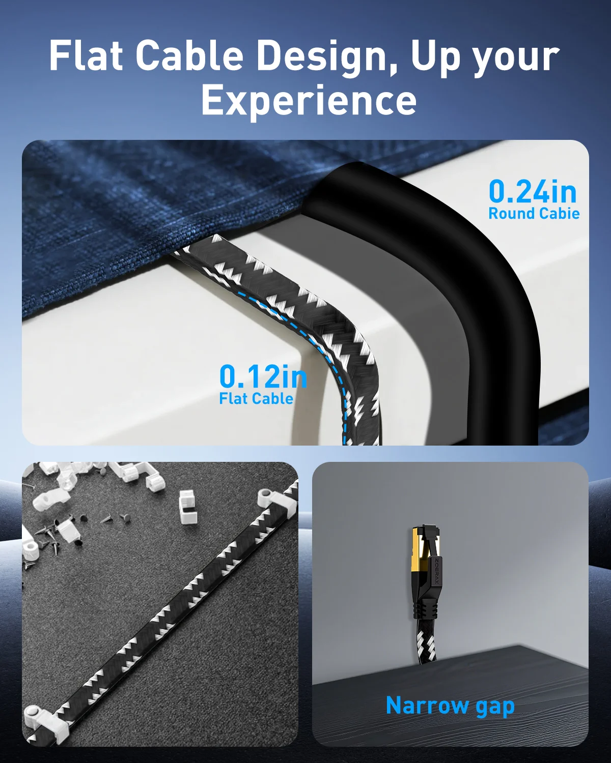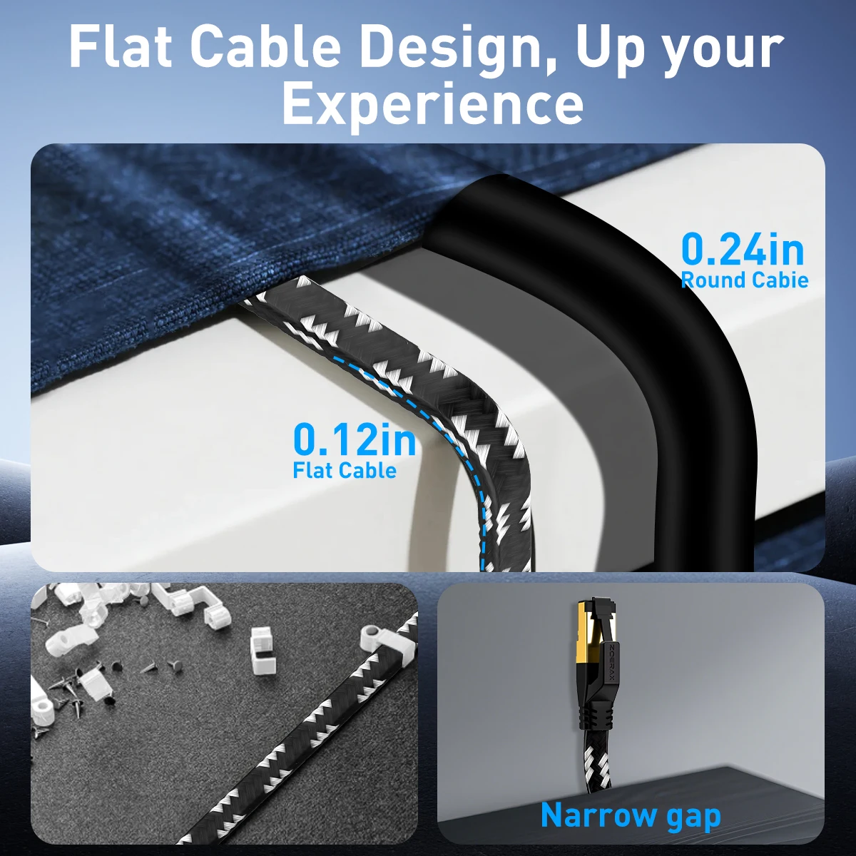 Ethernet Cable CAT8 Flat 40Gbps 2000MHz Rj45 Internet Network Cable Shielded Patch Cable Cat8 for PC Modem Laptop PS 5 Router