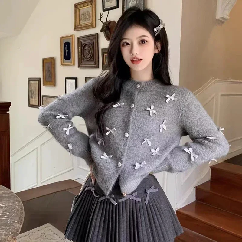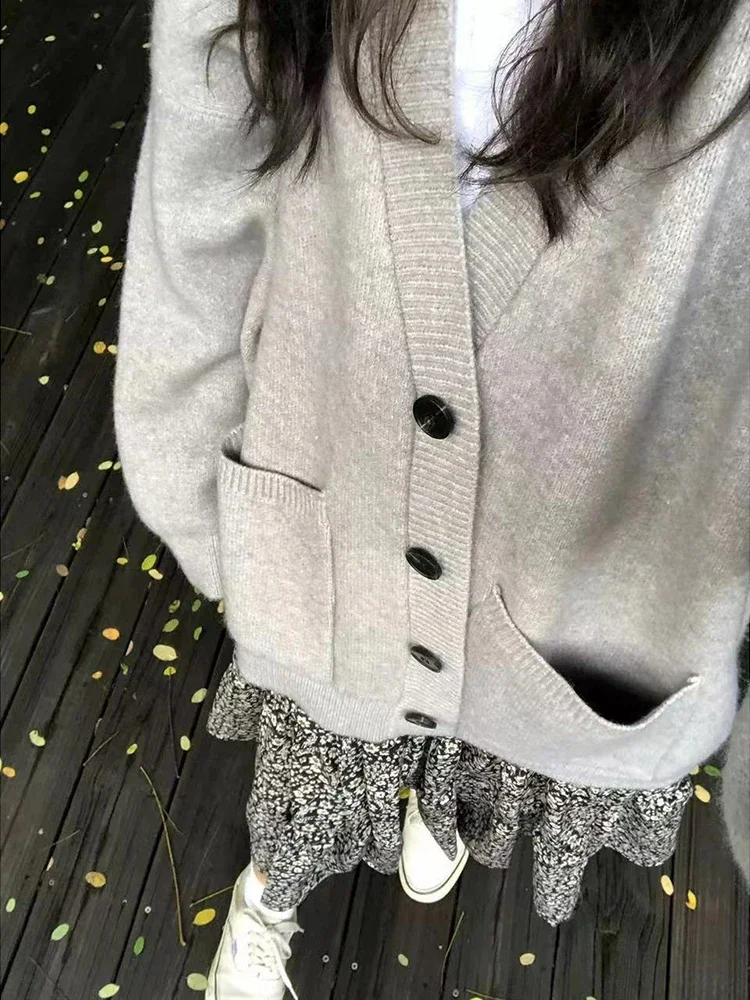 Japanese Plaid Knitted Cardigan Fall Winter Women Vintage Loose Lazy Wind Sweaters Jacquard Sweet V Neck Casual Long Sleeve Tops