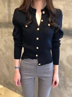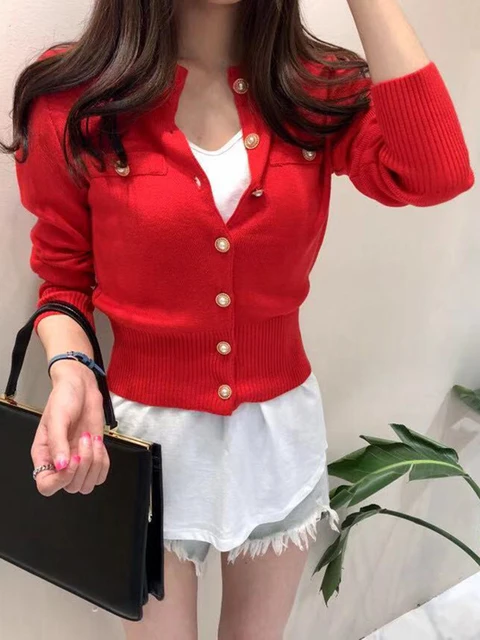 ZOKI Fashion Women Cardigan Sweater Spring Knitted Long Sleeve Short Coat Casual Single Breasted Korean