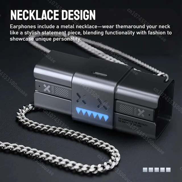 B10 Earphones include a metal necklace—wear them around your neck like a stylish statement piece, blending functionality with fashion to showcase unique personality. A perfect accessory that elevates any outfit, turning your earphones into a trendy wearable accent.