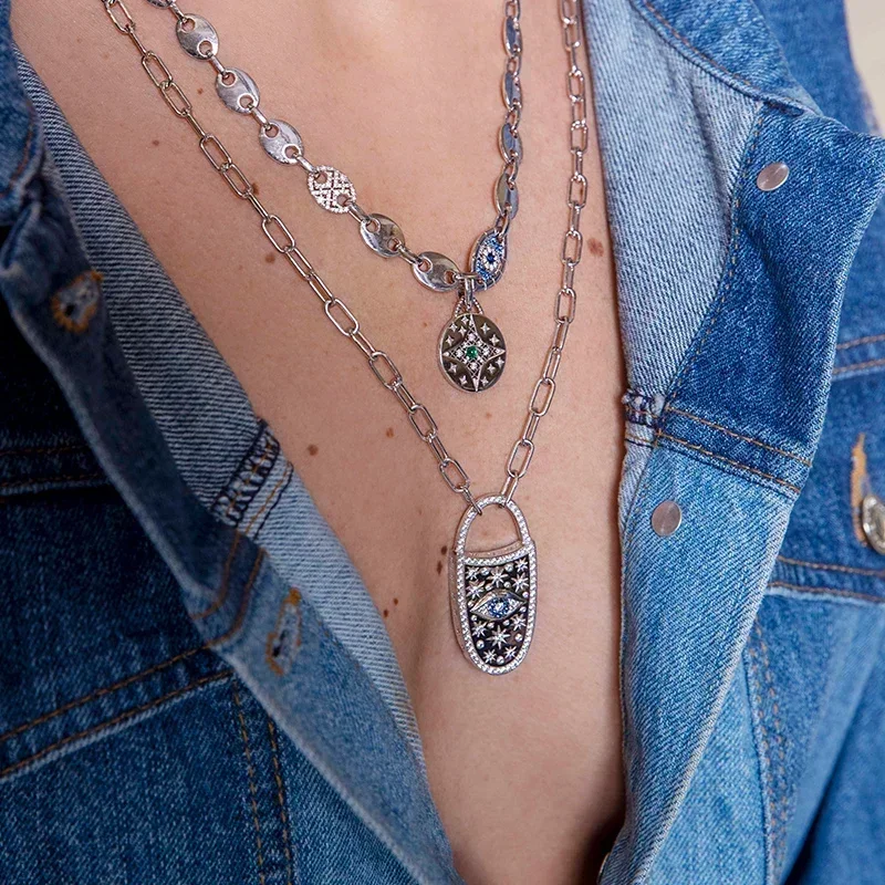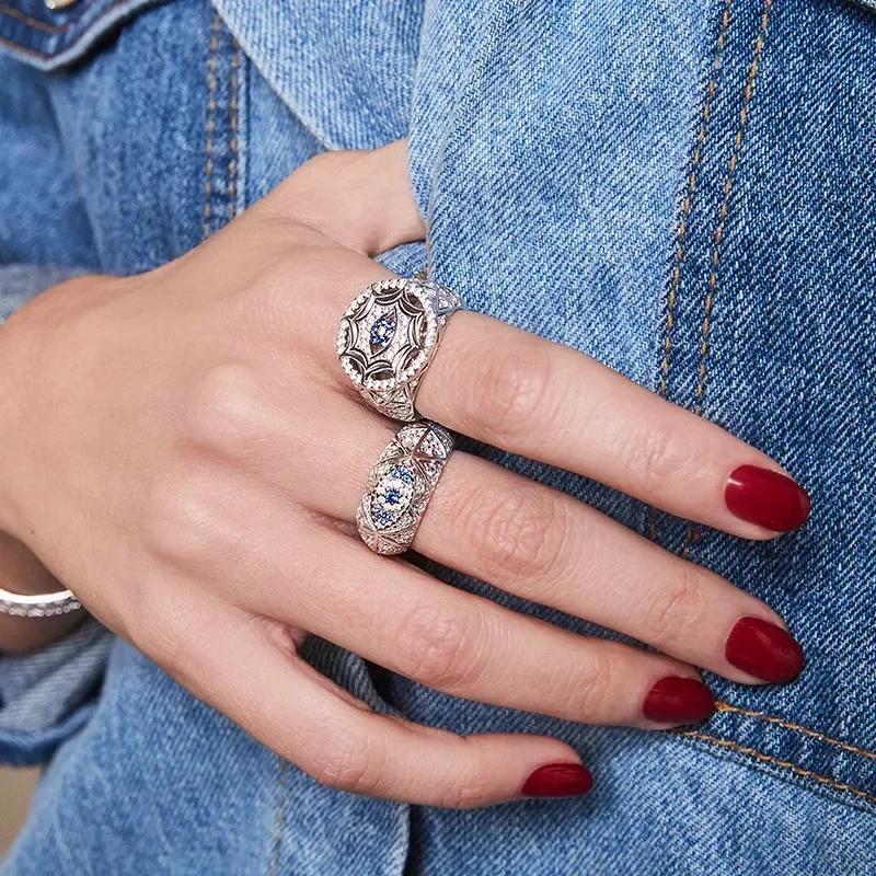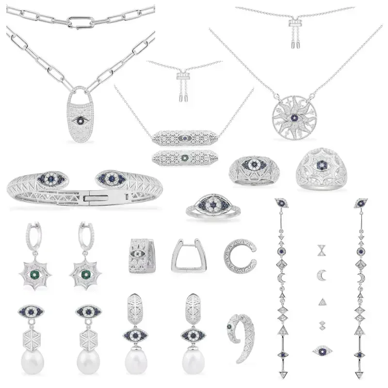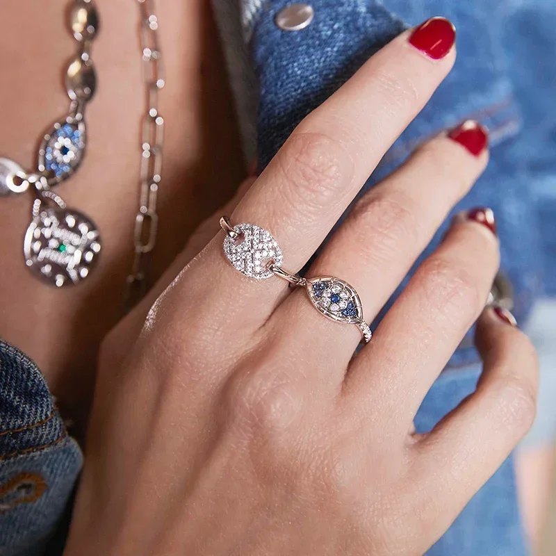 ZPF S925 Sterling Silver Lucky Eye Hand Ring Earrings Bracelet Necklace Women Bohemian Mysterious Retro Summer Fashion Jewelry