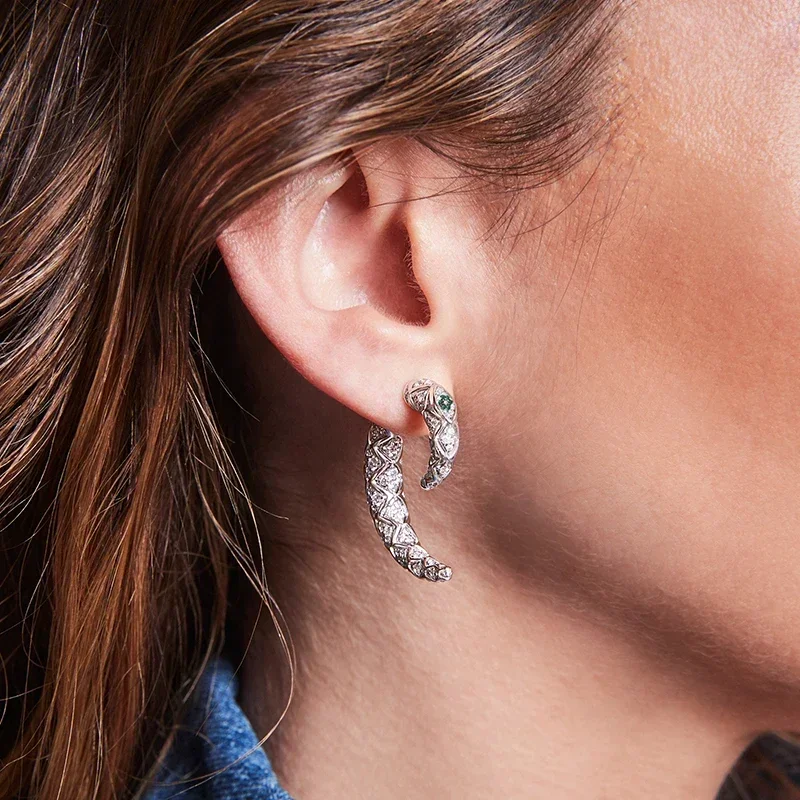 ZPF S925 Sterling Silver Golden Green Eyed Snake Animal Ring Earrings Bracelet Women Luxury Advanced Design Classic New Jewelry