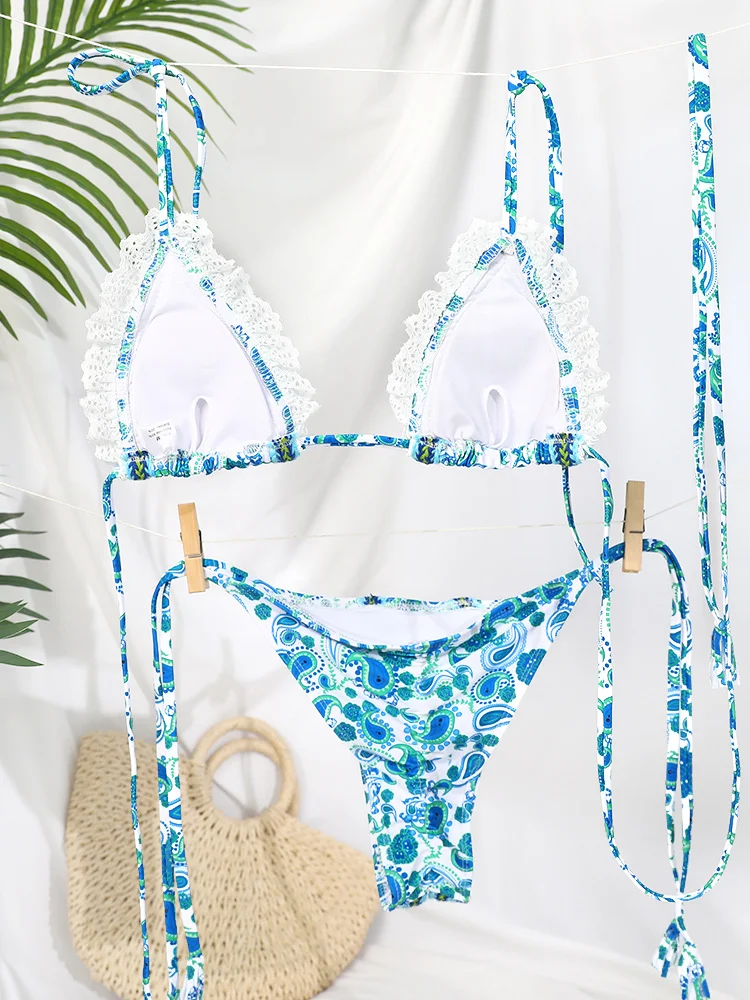 ZRTAK Sexy Women’s Swimwear 2025 Lace Bikini Swimming Swimsuit Bathing Suit Micro Folds Hight Cut