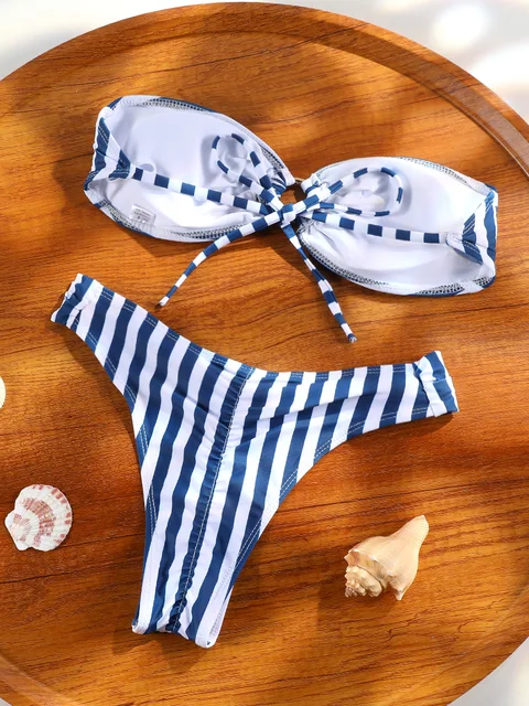 Sexy Bikini Set Striped Swimsuits For Women Printed Biquini Low Waist Bathing Suit 2025 Bathsuit Summer Bikinis