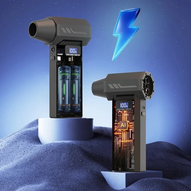 Easy to use operation:Knob stepless speed regulationThe user-friendly design of portable turbo fans ensures easy functionality. In addition, the charging board also has safe and reliable charging protection and overheating protection functions. The internal brushless motor can achieve high speeds of up to 130000RPM (revolutions per minute).